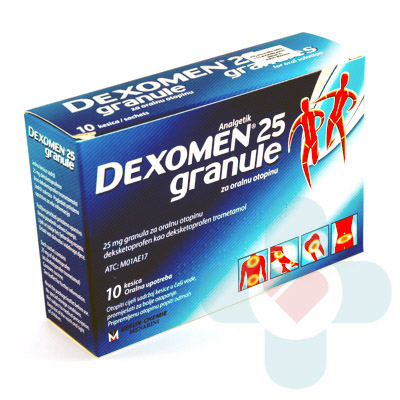 This medicine contains the active ingredient dexketoprofen which is also called a non-steroidal anti-inflammatory drug (NSAID), or just 'anti-inflammatory'. NSAIDs are used to ease pain, stiffness and inflammation of conditions that affect muscles, bones and joints. Dexketoprofen, as well as other NSAIDs, eases pain and inflammation by blocking the production of chemicals called ‘prostaglandins’, which are produced at sites of injury or damage. This medicine is used for short term symptomatic treatment of mild to moderate acute pain, such as acute muscular pain or joint pain, painful periods (dysmenorrhea), toothache.[...]