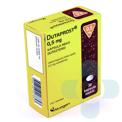 This medicine contains the active ingredient dutasteride which belongs to a group of medicines called 5-alpha reductase inhibitors. These medicines stop the production of 5-alpha reductase enzyme by preventing the conversion of the testosterone into dihydrotestosterone (hormones). This causes the prostate to stop growing and become smaller. Dutasteride is prescribed for the treatment of prostate gland enlargement (benign prostatic hyperplasia) which causes urinary problems. [...]